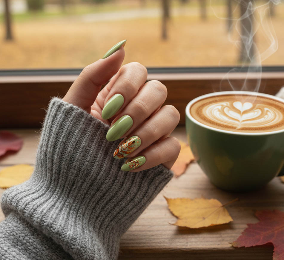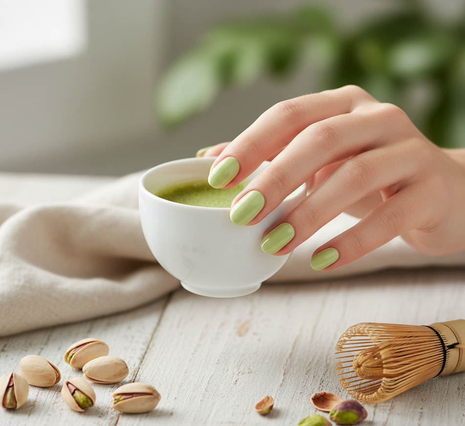 Niezależnie, czy wybierzesz subtelne zdobienie, czy pełny kolor – Pistachio Matcha zawsze wygląda świeżo i stylowo.