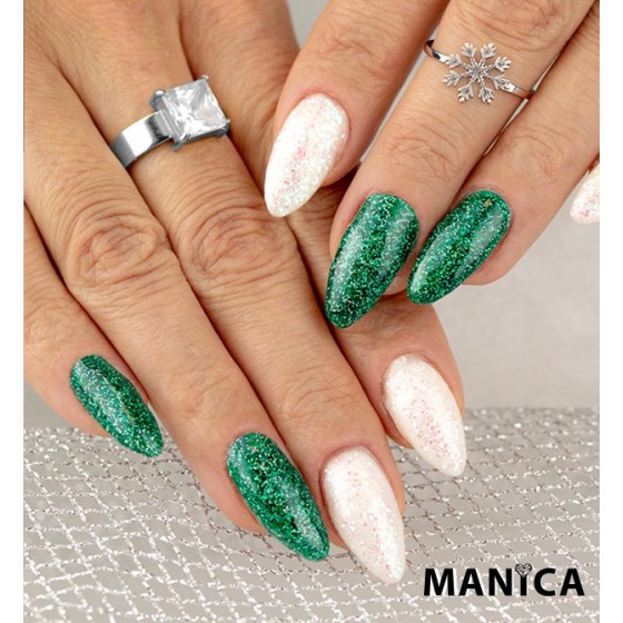Przezroczysty lakier z dużymi mieniącymi się drobinkami, doskonale łączący się z zimową aurę i nie tylko.