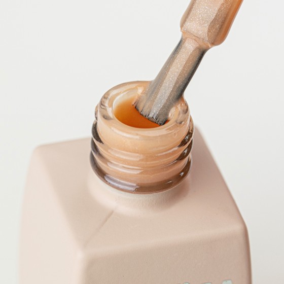 Chłodny odcień brązu z subtelnym blaskiem brokatu.