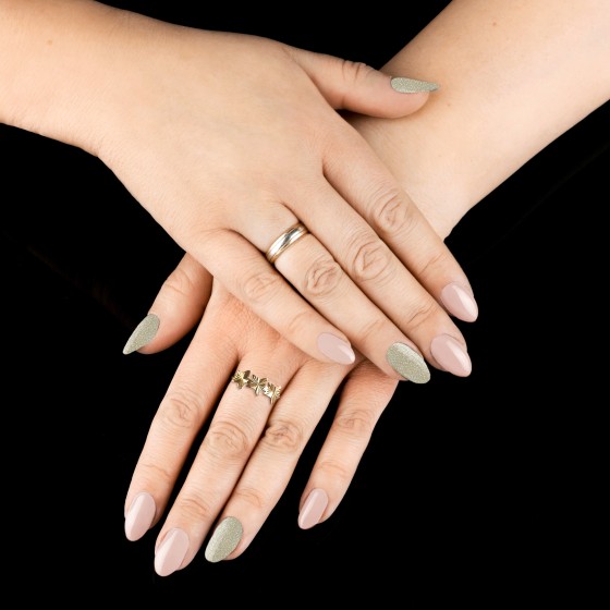Delikatny róż z brokatowymi drobinkami, które dodają dłoniom niezwykłego uroku.