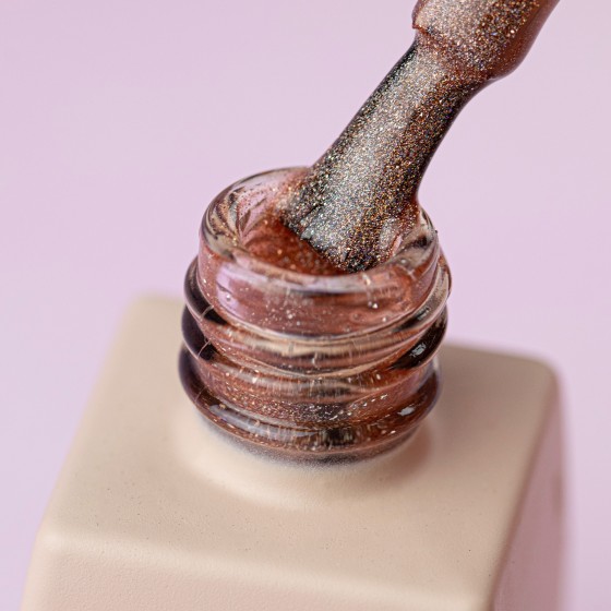Brązowy odcień z migoczącymi drobinami z efektem kociego oka. *na zdjęciu lakier prezentowany jest na czarnym podkładzie *w...