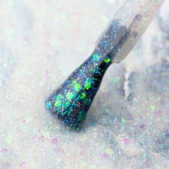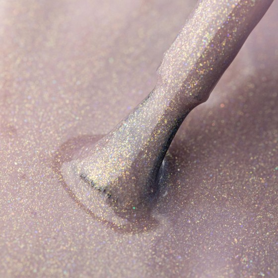Miedziany odcień z brokatem i dużymi drobinkami, które cudownie się mienią.