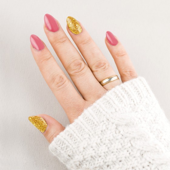 Delikatny róż z brokatowymi drobinkami, które dodają dłoniom niezwykłego uroku.