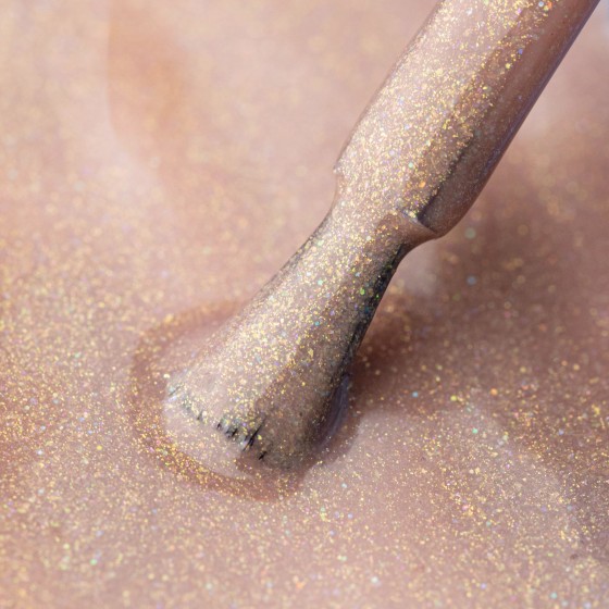 Jasny, ciepły brąz z drobinkami w kolorze złotym i multikolor.