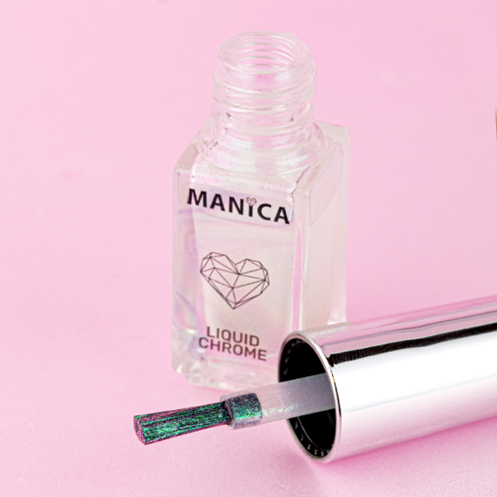 poznaj innowacyjny pyłek w płynie, ktłry doda twoim paznokciom spektakularnego, chromowanego wykołczenia. Manica liquid chrome...