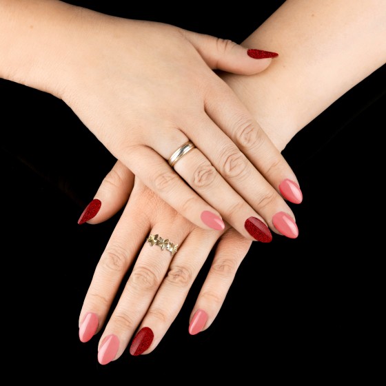 delikatny różowy odcień ze srebrnymi drobinkami brokatu, które uroczo mienią się z każdym ruchem dłoni.