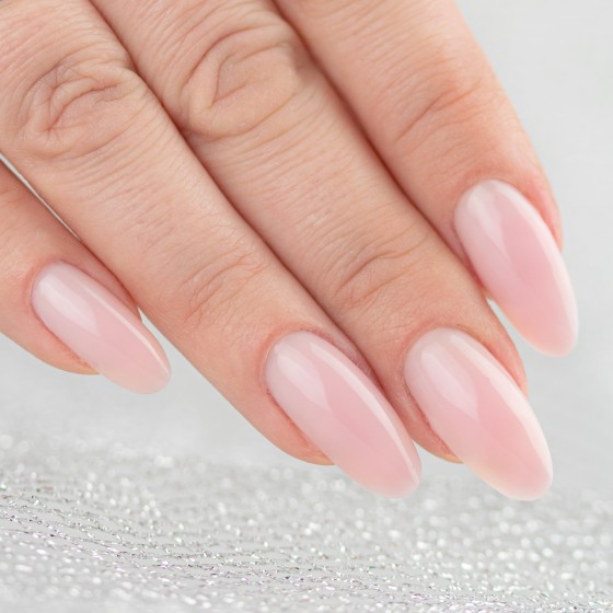 hybrydowa baza do paznokci w odcieniu jasnego różu.